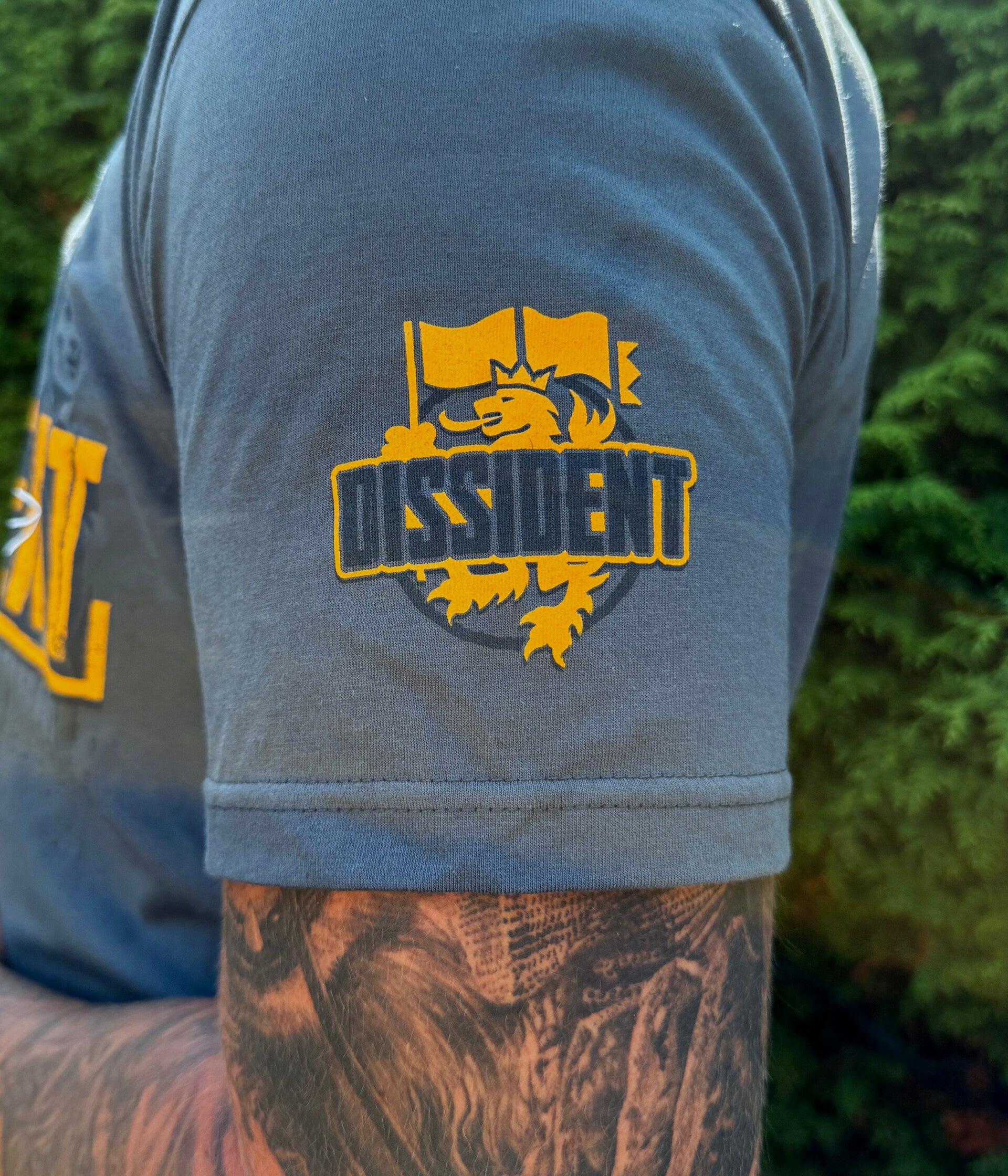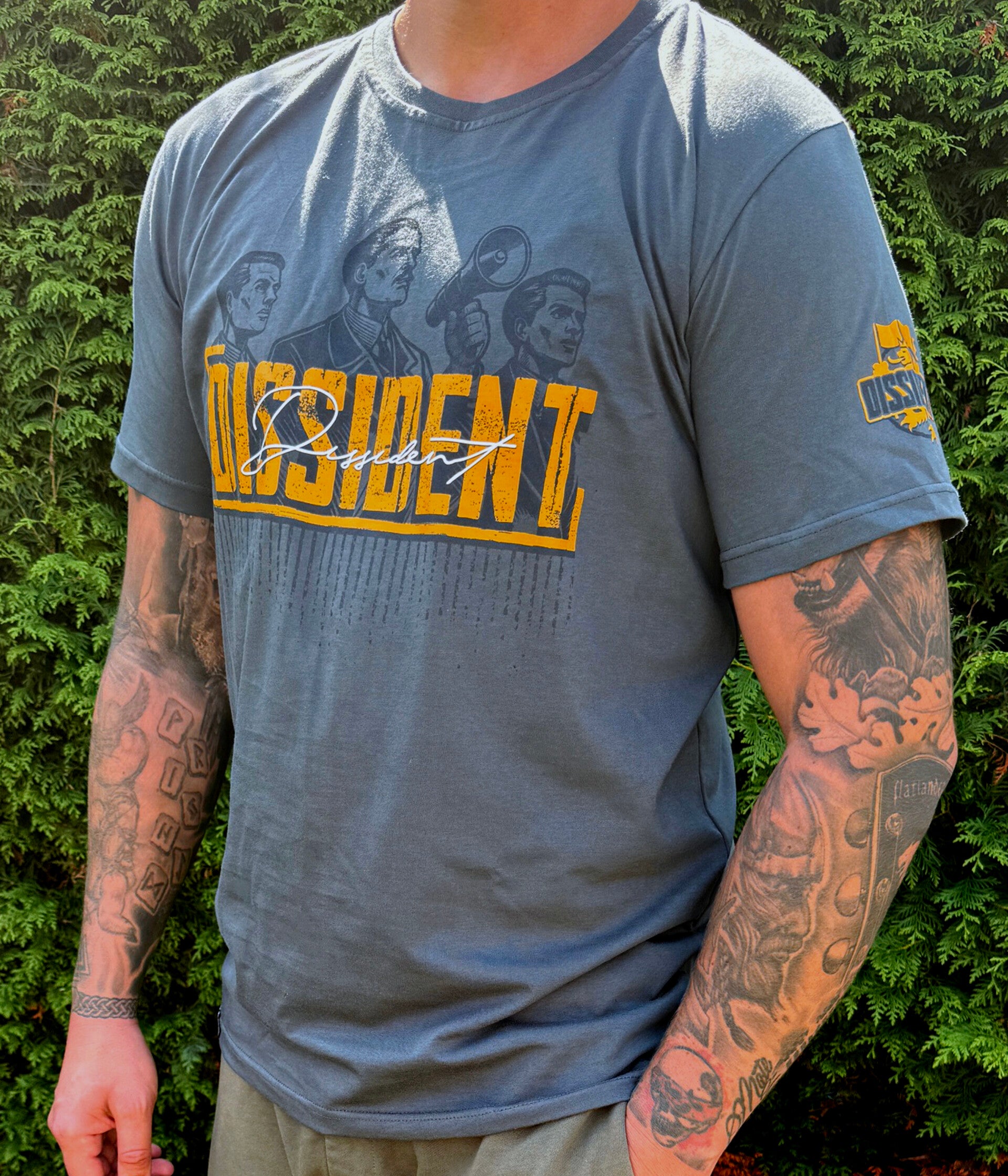 This shirt gives you the chance to express yourself in style as a dissident. The beautiful gray, high-quality fabric perfectly complements the dark and orange hues. As always, it's nicelly finished with a label at the bottom and a clean screen print.